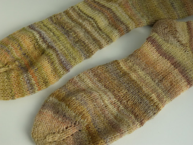Un modèle de chaussettes basique, avec du jersey tout simple, et des côtes pour que ça tienne un peu élastique sur le mollet. J'aurais d'ailleurs pu ajouter une maille ou deux dans les côtes d'ailleurs car j'ai le mollet euh.. généreux on va dire !